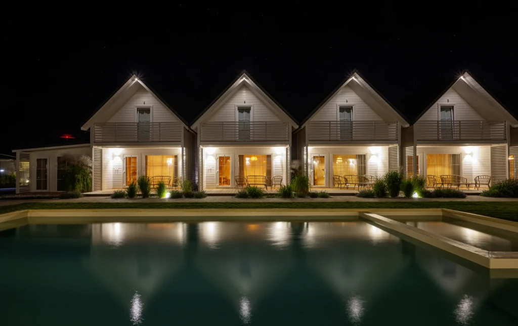 Bardzo przyjemne domki, przestronne, dobrze wyposażone (zmywarka, klimatyzacja). Basen zadbany z czyściutką wodą, regularnie sprzątany. Właściciel bardzo dba o szczegóły, czystość i atmosferę. Widać, że resort prowadzony jest z sercem i … More zaangażowaniem. Niedaleko wypożyczalnia rowerów. Do zejścia na plażę kilka minut. Morze jest tak blisko że słychać jego szum. Polecam :)