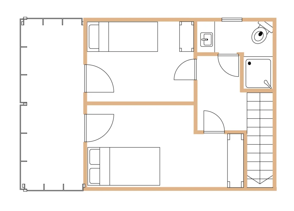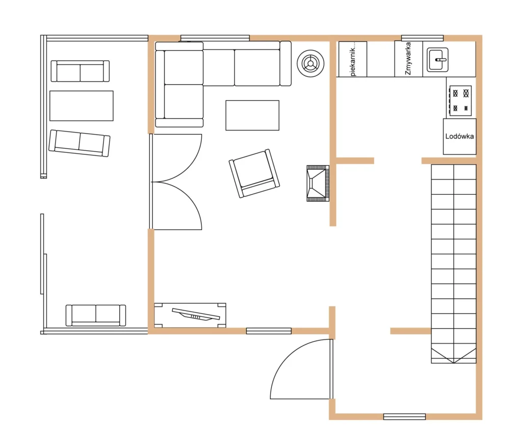 Domek (38m2) składa się z dobrze wyposażonych pomieszczeń: