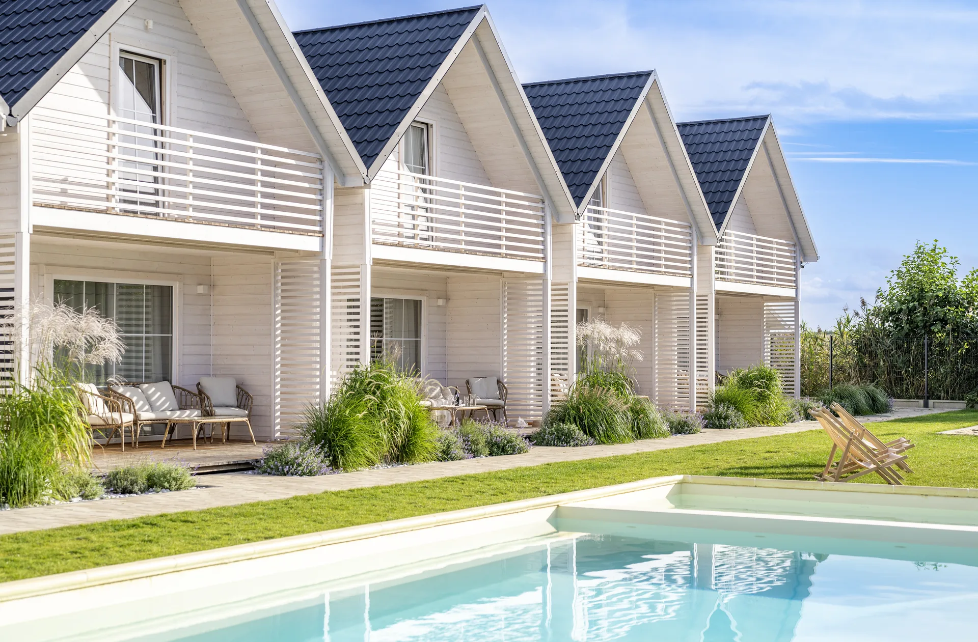 We offer 12 two-storey eco-friendly cottages, each with 38 m2 of space. They comfortably accommodate 4 guests, with a maximum capacity of 6.